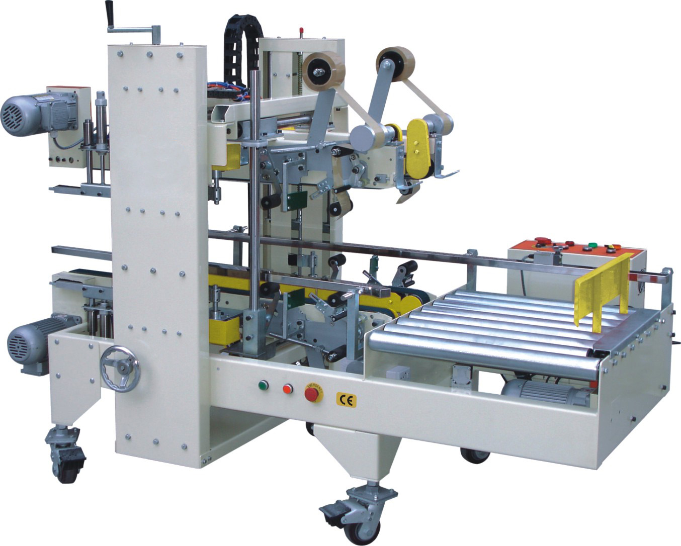 5、自動(dòng)折蓋機(jī)構(gòu)型封箱機(jī),可依紙箱大小調(diào)整,一次完成上下封箱動(dòng)作。