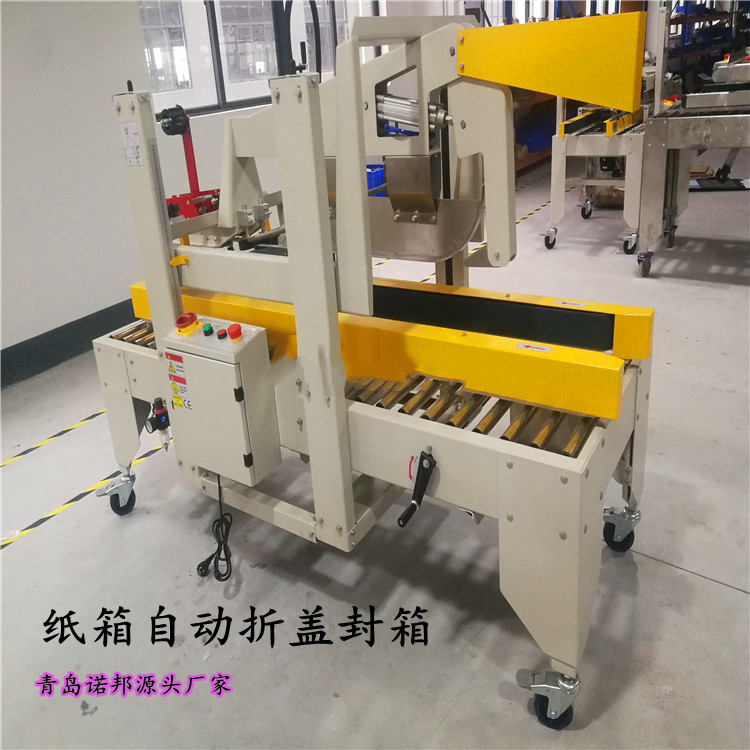 青島諾邦自動(dòng)化設(shè)備有限公司封箱機(jī)采用進(jìn)口元器件,先進(jìn)技術(shù)制造,占地面積小,性能穩(wěn)定,操作簡(jiǎn)單,可根據(jù)紙箱規(guī)格,手工調(diào)節(jié)高度和高度,自動(dòng)折紙箱上蓋,上下自動(dòng)粘上膠帶,速度快,平整美觀,大大減少勞動(dòng)力,提高生產(chǎn)效率,降低生產(chǎn)成本。青島諾邦以多年的技術(shù)經(jīng)驗(yàn)和優(yōu)質(zhì)的售后服務(wù)在行業(yè)內(nèi)贏得普遍好評(píng)。